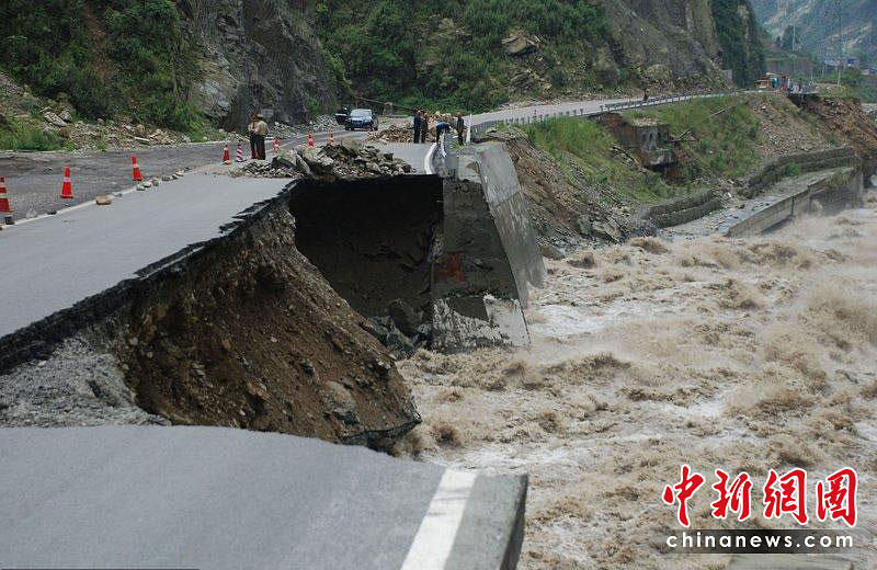 連日強降雨致使四川阿壩州茂縣岷江河水位不斷上漲,5月7日晚,213國道茂縣段一段路基被洪水沖毀約100米,這一路段徹底中斷,這已經(jīng)是這條有著“震中生命線”之稱的國道,在近期內(nèi)的第二次中斷。