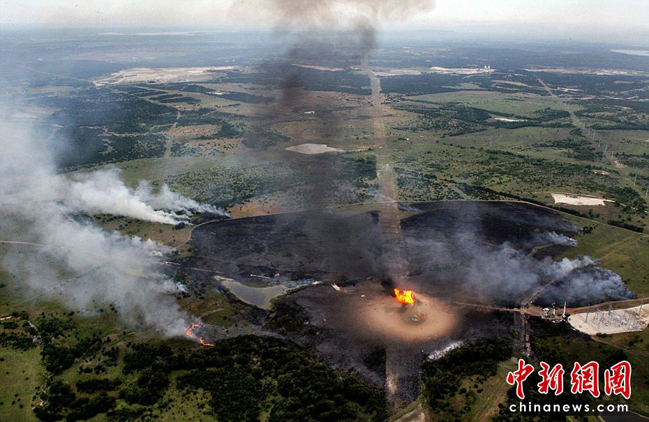 當?shù)貢r間6月7日,美國得克薩斯州北部發(fā)生一起天然氣管道爆炸事件。幾名工人在進行挖掘作業(yè)時觸及鋪設在地下的天然氣管道,引發(fā)爆炸及大火,造成至少一名工人死亡,7人受傷。圖片來源:中國新聞網(wǎng)