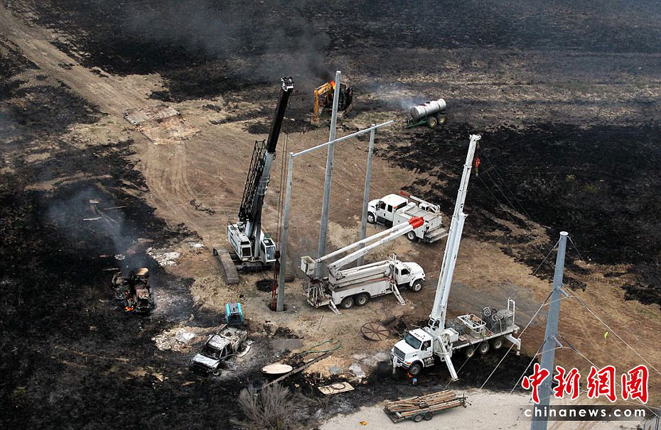 當?shù)貢r間6月7日,美國得克薩斯州北部發(fā)生一起天然氣管道爆炸事件。幾名工人在進行挖掘作業(yè)時觸及鋪設(shè)在地下的天然氣管道,引發(fā)爆炸及大火,造成至少一名工人死亡,7人受傷。圖片來源:中國新聞網(wǎng)