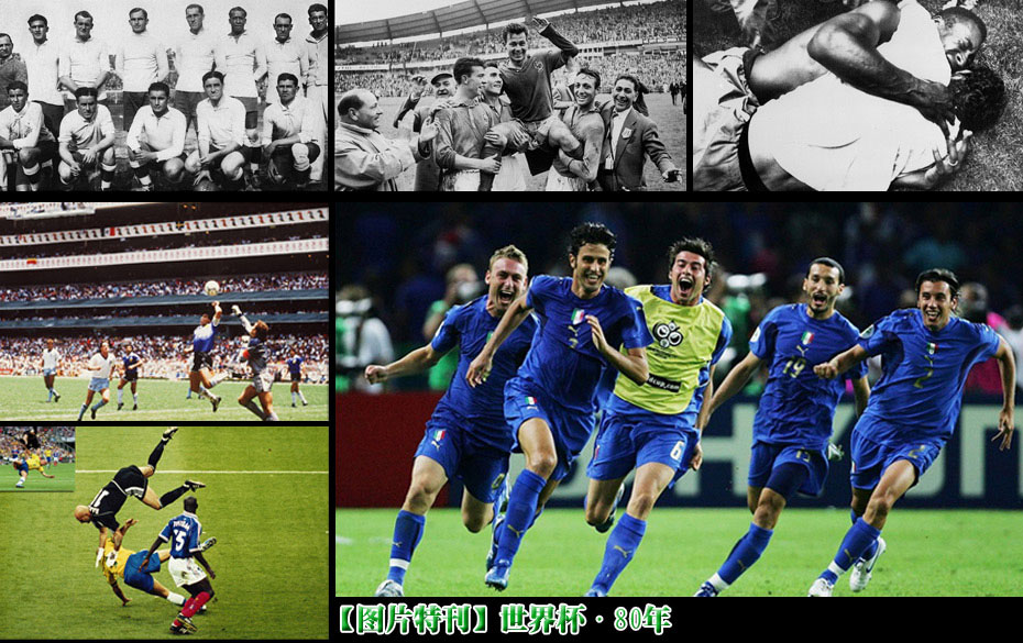1930年,首屆世界杯在烏拉圭拉開(kāi)帷幕,至2010年南非世界杯已走過(guò)80年歷史。在已經(jīng)結(jié)束的18屆世界杯里,有烏拉圭、意大利、德國(guó)、巴西、英格蘭、阿根廷和法國(guó)七個(gè)國(guó)家舉起冠軍獎(jiǎng)杯。在世界杯的歷史長(zhǎng)河中,有奪冠喜悅,也有飲恨失落,還有那些讓人難以忘記的鏡頭……