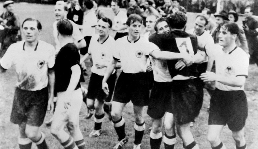 選擇瑞士承辦1954年世界杯,因?yàn)閲?guó)際足聯(lián)總部在該國(guó)的蘇黎世,而且適逢FIFA成立50年慶典。36支國(guó)家隊(duì)參加了預(yù)選賽,16支隊(duì)伍晉級(jí)決賽圈,韓國(guó)、蘇格蘭和土耳其第一次躋身世界杯大家庭。在巴塞爾、伯爾尼、洛桑、蘇黎世和日內(nèi)瓦五個(gè)主辦城市舉行的世界杯比賽達(dá)到了極高的水平,26場(chǎng)比賽打進(jìn)了難以置信的140個(gè)進(jìn)球,西德7比2土耳其、西德6比1奧地利、匈牙利8比3西德、匈牙利9比0韓國(guó)、烏拉圭7比0蘇格蘭,一場(chǎng)接一場(chǎng)的進(jìn)球秀,讓觀眾大飽眼福。最瘋狂的一場(chǎng)比賽出現(xiàn)在1/4決賽,奧地利7比5擊敗瑞士,雙方聯(lián)手貢獻(xiàn)12球!這場(chǎng)比賽也因此載入了史冊(cè),成為了世界杯歷史上單場(chǎng)進(jìn)球最多的比賽。
