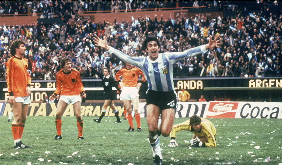1978年,盡管荷蘭隊還是那么強大,但“全攻全守”在走下坡路,兩位劃時代的人物克魯伊夫和貝肯鮑爾退出各自國家隊,阿根廷采用1962年巴西隊的4-3-3陣型,在河床體育場3比1擊敗荷蘭隊奪冠。 阿根廷的成功得益于主教練梅諾蒂的指揮以及一批球星的崛起。鐵門菲洛爾、隊長帕薩雷拉、突破高手阿爾迪列斯。74年那屆阿根廷隊中只有肯佩斯和豪斯曼兩人入選78年陣容。當然,最引人注目的是一頭長發(fā)的肯佩斯,他是這屆世界杯的英雄……