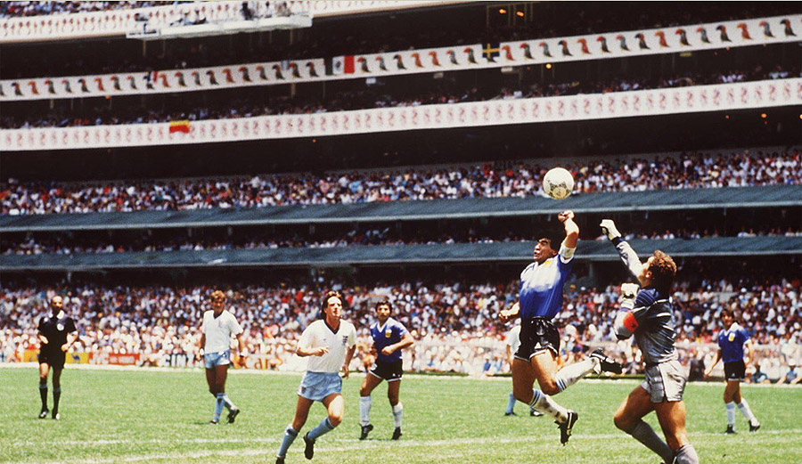 1986年世界杯原定在哥倫比亞舉辦,由于政局不穩(wěn)改由墨西哥承辦。雖然世界杯前遭遇大地震導(dǎo)致2萬人喪生,但這并未影響墨西哥人舉辦一屆出色的世界杯。1986年世界杯屬于馬拉多納,本屆大賽的7場比賽中,阿根廷隊共打進14個進球,馬拉多納攻入5球、助攻5次,他帶領(lǐng)阿根廷隊在淘汰賽里先后擊敗烏拉圭、英格蘭、比利時和西德隊最終奪冠。重要的是,迭戈在與英格蘭的比賽里留下了“上帝之手”和“千里走單騎”,這是讓人永遠無法忘記的經(jīng)典中的經(jīng)典。
