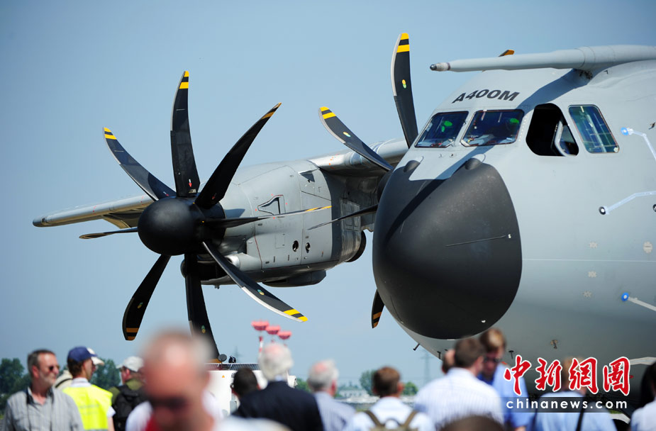 6月8日,德國柏林,一架空中客車A400M軍用運輸機(jī)在2010年柏林國際航空展上試飛。