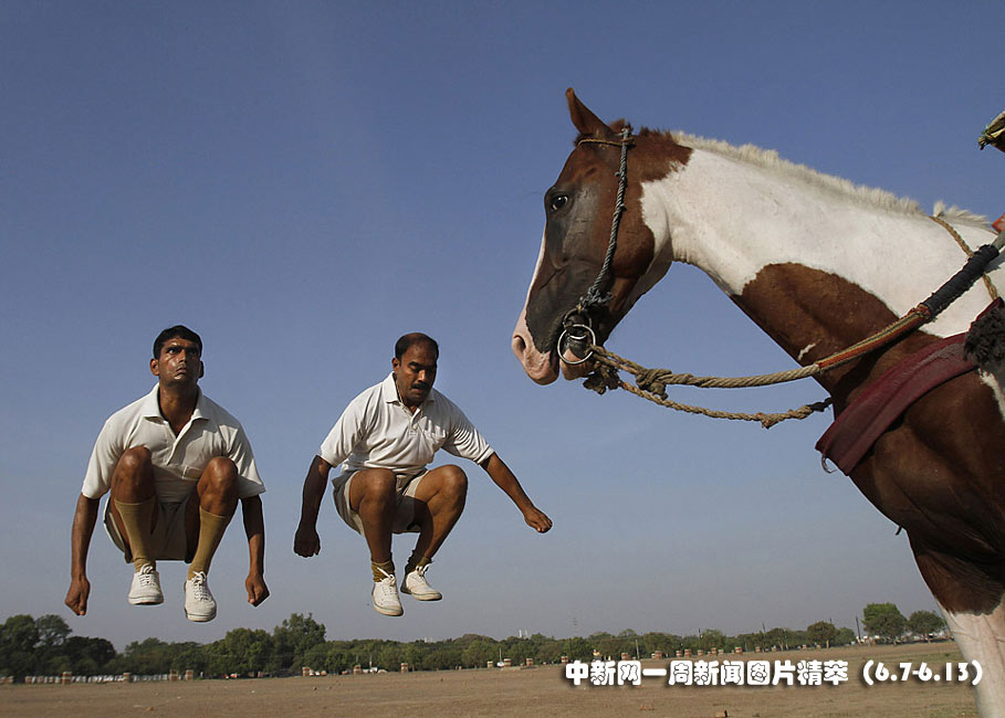 周三(9日),在印度阿拉哈巴德,警察正在做練習(xí),此時(shí)一匹馬正好經(jīng)過(guò)。