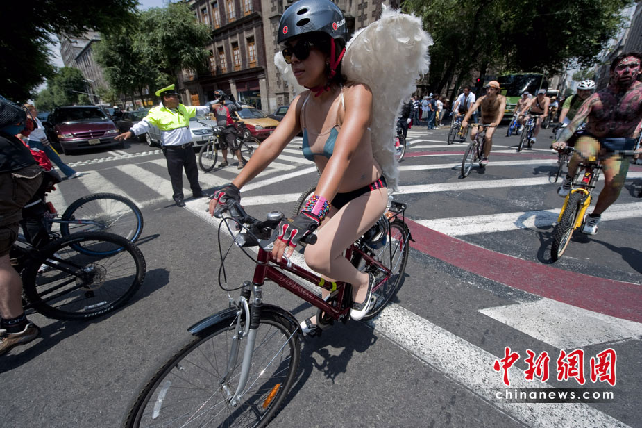 6月12日,在英國(guó)倫敦、墨西哥首都墨西哥城等地舉行了一年一度傳統(tǒng)的“裸體騎自行車(chē)大賽”。