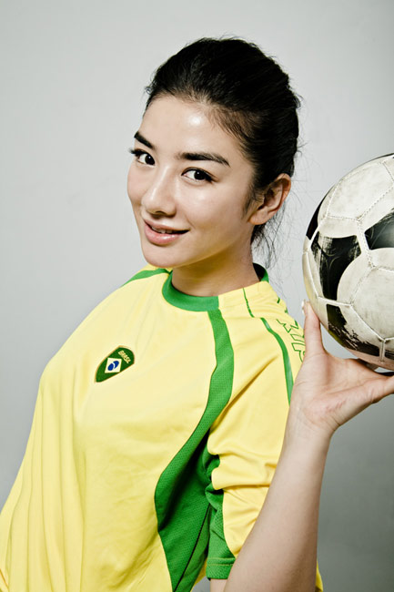 近日,黃奕身穿巴西隊球衣拍攝了一組世界杯足球?qū)懻,為南非世界杯助威喝彩?/p>