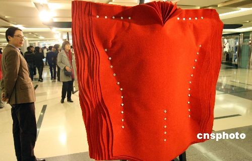 11月8日,“從哪里來(lái)——時(shí)裝藝術(shù)國(guó)際展/From Where-- Fashion Art 2008 International在北京國(guó)貿(mào)商城開幕,本次展覽共邀請(qǐng)10個(gè)國(guó)家和地區(qū)88位藝術(shù)家的88件作品,他們分別來(lái)自美國(guó)、法國(guó)、德國(guó)、英國(guó)、韓國(guó)、中國(guó)以及中國(guó)香港地區(qū),受邀參加本次展覽的外國(guó)藝術(shù)家有Louda larrain、Johanna braitbart、金暎仁、琴基淑、李知賢等。中新社發(fā) 錢興強(qiáng) 攝