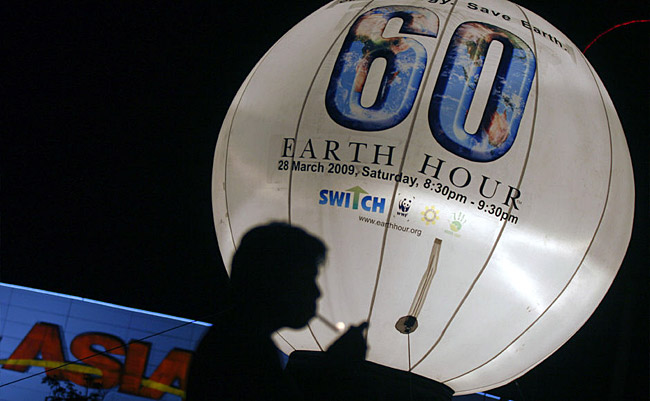 菲律賓馬尼拉:3月28日,在菲律賓首都馬尼拉,人們將印有“地球一小時”字樣的氣球升起。