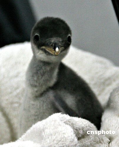 2008年1月2日上午,哈爾濱極地館里的企鵝小寶寶出生已滿10天。由于小寶寶是個“早產(chǎn)兒”,之前企鵝蛋又受過傷,因此所有人都迫切想知道小寶寶到底健不健康。今天經(jīng)過專家對它進行全面的體檢,測得體重近400克,毛色良好屬于“健康寶寶”。中新社發(fā) 姚庭山 攝