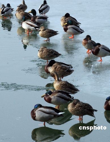 2月16日,連日溫暖的陽(yáng)光擁抱著初春的北京,北京皇家園林北海公園內(nèi)湖冰漸漸開(kāi)融,幽雅的環(huán)境招來(lái)百余只野鴨子、鴛鴦飛落棲身、嬉戲,吸引眾多游客觀賞。中新社發(fā) 錢興強(qiáng) 攝