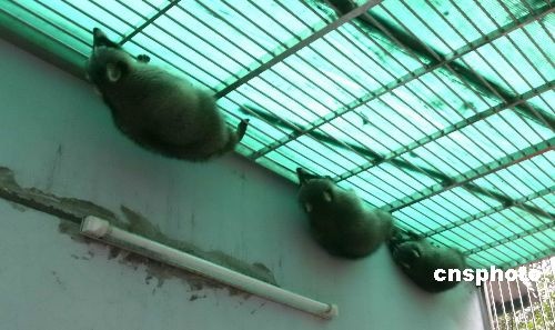 11月15日,3只食蟹浣熊在重慶鱷魚(yú)中心景區(qū)內(nèi)玩耍。據(jù)景區(qū)管理人員介紹,這些浣熊是11月初從南美引進(jìn)的,這些小家伙機(jī)靈溫和,喜歡在夜間活動(dòng)。中新社發(fā) 宋偉 攝