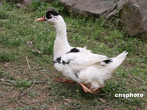 2009年3月10日,在四川省綿陽市游仙區(qū)忠興鎮(zhèn)涌泉村一社張?jiān)茲杉遗臄z的一只長(zhǎng)了四只腳的鴨子。這只鴨子除了長(zhǎng)有兩只正常的腳之外,在兩只正常腳的根部分別多長(zhǎng)出了兩只腳狀的肢體。其特征和正常的鴨腳差不多,腳蹼腳趾俱全,只是看去稍顯小些。走路時(shí),兩只腳好像抱在屁股上不能活動(dòng)。 中新社發(fā) 蒲滔 攝