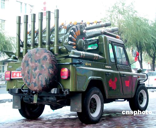 10月21日,一輛酷似軍用戰(zhàn)車(chē)的“禮炮車(chē)”出現(xiàn)在黑龍江小鎮(zhèn)。當(dāng)日,黑龍江省牡丹江地區(qū)的穆棱市八面通鎮(zhèn)上,一家婚慶禮儀公司推出婚慶“禮炮車(chē)”服務(wù)項(xiàng)目,頗讓生活在小鎮(zhèn)上的居民感到新鮮。中新社發(fā) 莊文斌 攝