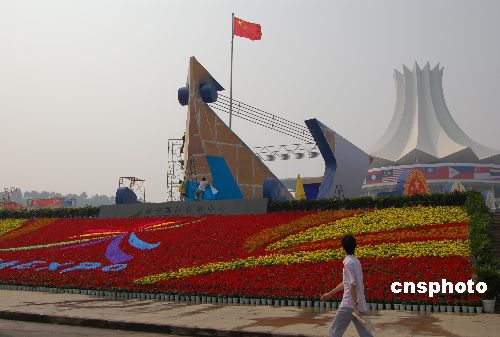 十月二十六日,廣西南寧國際會展中心花團錦簇,迎接即將于十月二十八日至三十一日舉行的第四屆中國—東盟博覽會和中國—東盟商務(wù)與投資峰會以及二〇〇七年南寧國際民歌藝術(shù)節(jié)。中新社發(fā) 劉萬強 攝