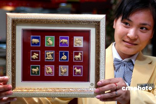10月28日,一款十二生肖黃金“郵票”在江蘇連云港金店亮相。據(jù)稱,該“郵票”采用千足金電鑄而成,造型逼真,吸引了許多消費(fèi)者。中新社發(fā) 王春 攝