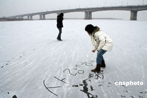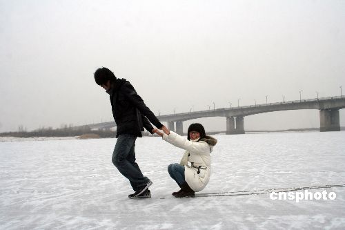 11月19日零時(shí),黑龍江哈爾濱氣溫驟降,松花江段全面封江。當(dāng)日13時(shí),當(dāng)?shù)赜瓉淼谝粓鲅。中新社發(fā) 姚庭山 攝
