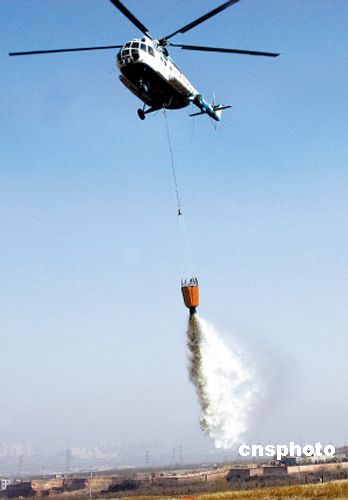 12月3日,一架印有“森林防火”字樣的直升機,在洛陽龍門山森林公園連續(xù)進行4個架次的吊桶灑水滅火訓練。當天河南省首次森林航空消防野外訓練在洛陽舉行。中新社發(fā) 李從軍 攝