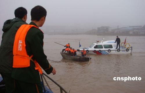 12月22日,“錦峰1號”貨輪在浙江瑞安飛云江沉沒。當日晨6時30分許,“錦峰1號”貨輪運載近千噸沙石返回浙江瑞安,在途經(jīng)飛云江大橋時,由于濃霧彌漫,能見度底,貨輪左弦與水下橋墩發(fā)生碰擦,致使左弦受損進水,船員進行緊急堵塞無效,后欲急速靠岸未果,船體迅速下沉。接報后的當?shù)毓策叿、海事部門迅速駕駛營救船艇趕赴現(xiàn)場,將失去動力的救生船上的五名船員安全轉移到岸上。中新社發(fā) 蔡寬元 攝