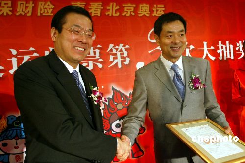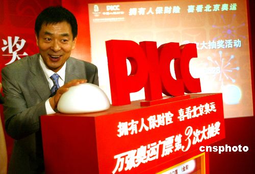一月四日,著名表演藝術(shù)家濮存昕受邀為“擁有人保財(cái)險(xiǎn),喜看北京奧運(yùn)——萬張奧運(yùn)門票大抽獎”活動進(jìn)行第三次抽獎。在活動上,濮存昕被北京2008年奧運(yùn)會保險(xiǎn)合作伙伴中國人保財(cái)險(xiǎn)聘為公司奧運(yùn)形象大使。他高興地表示,自己已經(jīng)提出申請成為北京殘奧會志愿者, 希望參與更多的社會公益事業(yè)。中新社發(fā) 楊可佳 攝