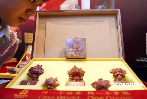 一月八日,特許商品定貨會(huì)在北京隆重舉行,北京奧組委授權(quán)的特許生產(chǎn)企業(yè)展示了近千種最新設(shè)計(jì)、生產(chǎn)的奧運(yùn)特許商品,主要包括各類主題徽章、貴金屬紀(jì)念章、工藝品等。一連三日的培訓(xùn)會(huì)為零售企業(yè)搭建了一個(gè)交流的平臺(tái)。截止目前為止,北京奧組委授權(quán)的特許生產(chǎn)商已達(dá)到六十八家,產(chǎn)品囊括十四大類,五千款商品。中新社發(fā) 任海霞 攝