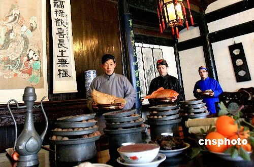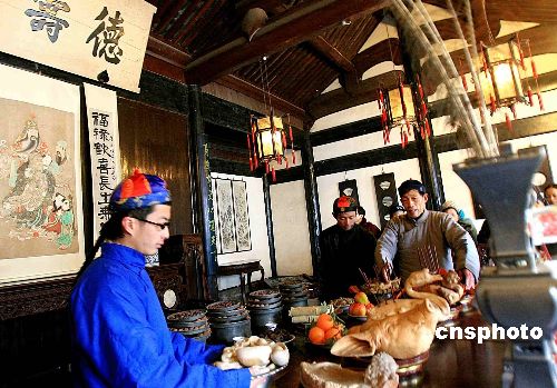 1日31日,三位穿著清代服裝的男演員分別代表祖孫三代,在浙江紹興市區(qū)的魯迅祖宅內(nèi)彩排過“小年”習(xí)俗。當(dāng)日是小年夜后的第一天,按紹興傳統(tǒng)小年夜要舉行祝福祭祀,這一習(xí)俗因魯迅筆下的《祝!范劽珖。中新社發(fā) 袁云 攝