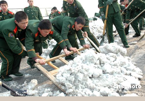 圖:武警江蘇總隊(duì)官兵“交通大動(dòng)脈”上抗雪災(zāi)