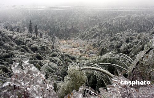 自1月16日以來,受冷空氣南下和低空切變南壓影響,福建龍巖長汀縣持續(xù)低溫陰冷,山區(qū)大范圍出現(xiàn)凍雨和雨夾雪天氣,截至2月2日上午嚴重冰災(zāi)已造成長汀縣直接經(jīng)濟損失四點二五億元。目前,該縣仍有六個鄉(xiāng)鎮(zhèn)、五十七個村、二百個自然村尚未恢復(fù)正常供電。中新社發(fā) 黃啟元 攝