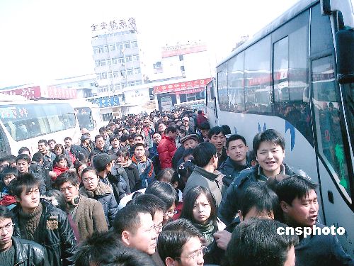 2月4日,安徽省合肥長途汽車站迎來雪后恢復(fù)運行的第一個短途客運高峰。由于久雪之后天氣放晴,加上臨近年關(guān),合肥長途汽車站內(nèi)旅客激增,當日大約有2萬多名乘客擁擠在該站車站內(nèi),排成一條條“長龍”。中新社發(fā) 張發(fā)平 攝