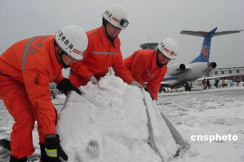 圖:貴州銅仁消防隊(duì)員機(jī)場破冰