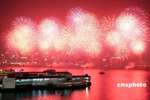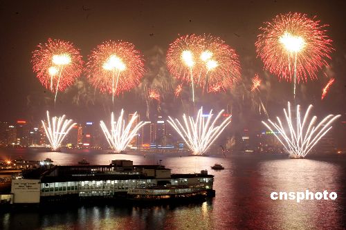 二月八日,農(nóng)歷新年初二,香港維港上空賀歲煙花絢麗璀璨。據(jù)介紹,主辦單位動(dòng)用四艘躉船發(fā)放煙花,制造出長一千米、高三百米的“煙花屏幕”,是歷年來最大型的煙花匯演。煙花匯演上演十幕,歷時(shí)二十三分鐘,其中“北京”字樣的煙花更是頭一次在香港發(fā)放。警方估計(jì)有四十萬人在維港兩岸觀賞。中新社發(fā) 王麗南 攝