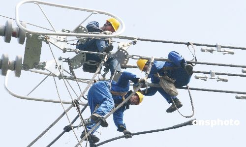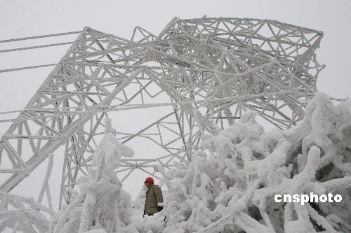 2月23日,全國第一條因暴雪災(zāi)害,導(dǎo)致輸電線路鐵塔倒塌的三峽電力送往華東的大動(dòng)脈±500千伏湖北宜昌至上海華新直流輸電線路,安徽境內(nèi)搶修工作全部接束,中斷37天的500千伏宜華線恢復(fù)貫通。1月17日,該輸電線路﹟1146-﹟1153段4座位于大別山腹地安徽六安境內(nèi)崇山峻嶺中的巨型鐵塔被冰雪壓塌,線路嚴(yán)重受損。災(zāi)害發(fā)生后,安徽省電力公司500多名搶險(xiǎn)人員和當(dāng)?shù)財(cái)?shù)百干部群眾克服天寒地凍、山路陡峭等困難,奮力搶修,經(jīng)過37天艱苦奮戰(zhàn),運(yùn)送搶險(xiǎn)物資150多噸,終于將4座倒塌鐵塔重新修建完成,宜華線路全線貫通。中新社發(fā) 陳超平 攝