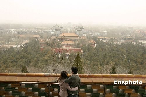 2008年3月1日,北京的天空告別連日的晴朗,淡黃色的浮塵籠罩了北京大部分地區(qū)。據北京氣象部門介紹,2月29日,甘肅南部、內蒙古西部出現沙塵天氣,大量浮塵升到高空,在西北氣流作用下向東南方向轉移,3月1日上午,北京周邊的內蒙古西部、山西及河北北部仍然在持續(xù)沙塵天氣,沙塵隨著東移南下的冷空氣飄至京城。 中新社發(fā) 魯谷 攝