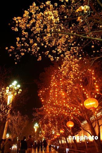 3月12日夜晚,一對情侶在北京西長安街的紅墻外觀燈、賞花。兩會期間,北京長安街紅燈籠高掛,與盛開的玉蘭花相映,烘托出慶祝氣氛。中新社發(fā) 盛佳鵬 攝