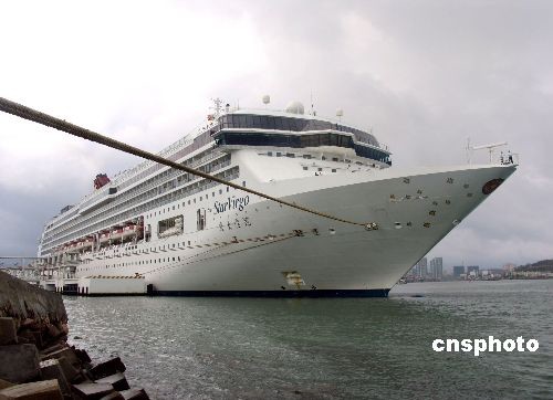 4月1日,馬來西亞麗星郵輪公司旗下大型豪華郵輪“處女星”號(superstar virgo)正式接替“天秤星”號首航三亞,這是一艘目前航行亞洲市場最大、最豪華的郵輪。據(jù)了解,該輪接替“天秤星”號執(zhí)行4月至10月“香港—三亞-越南-香港”定期航線,排水量7.6萬噸,滿載客2800人,船員1400人。據(jù)三亞邊防檢查站介紹,“處女星”號2008年將計劃?咳齺25個航次,平均每7天一個航班。中新社發(fā) 段中偉 攝