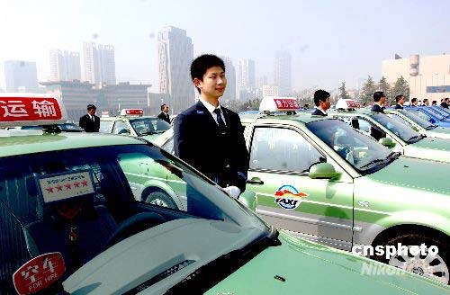 圖:青島出租車倡議“八個(gè)文明”迎奧運(yùn)