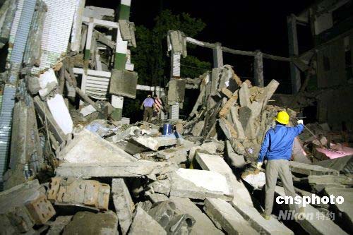 5月13日凌晨,距離四川汶川地震震中直線距離約30公里的四川綿竹市漢旺鎮(zhèn)東方汽輪機有限公司在地震中受損嚴重,死亡人數已超過60人,目前仍有500余人生死不明。東方汽輪機廠廠區(qū)內裂縫嚴重。中新社發(fā) 郭晉嘉 攝