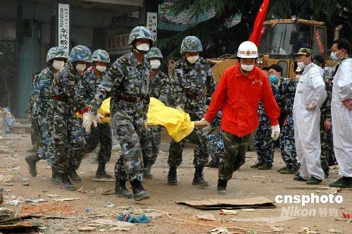 圖:海軍陸戰(zhàn)隊官兵在綿竹災(zāi)區(qū)展開搜救