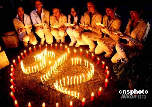5月17日晚,來自日本、韓國、馬來西亞、泰國、菲律賓以及中國的40名參加2008亞洲超級模特大賽的選手,在廣西興安古老的靈渠放“河船”為中國“5·12”大地震受災(zāi)人民祈福。中新社發(fā) 錢興強(qiáng) 攝