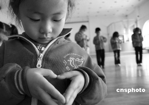 5月19日是國務(wù)院公布的全國哀悼日的第一天。當(dāng)日14點(diǎn)28分,山東省濱州市小白鴿幼兒園的22名小朋友在老師的指導(dǎo)下,圍成了“愛國心”圖案。與此同時(shí),這22名小朋友們還用稚嫩的小手?jǐn)[出了“愛國心”手勢,并在哀樂聲中默哀3分鐘,以表達(dá)他們對(duì)四川汶川大地震遇難者的哀思之情。中新社發(fā) 郭志華 攝