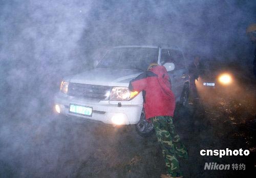 從5月21日晚至22日凌晨,中新社記者通過(guò)四川省雅安市的S210省際公路前往臥龍,海拔4000多米的夾金山頂峰被進(jìn)出汶川地震重災(zāi)區(qū)的大型貨車、救護(hù)車、轉(zhuǎn)移災(zāi)民車等運(yùn)輸車輛堵塞,采訪車多次深陷泥濘之中。由于目前通往汶川地震災(zāi)區(qū)的被毀公路在修復(fù)后極為脆弱,因此這條過(guò)去不起眼的公路成為連結(jié)成都與汶川的生命線。中新社發(fā) 任晨鳴 攝