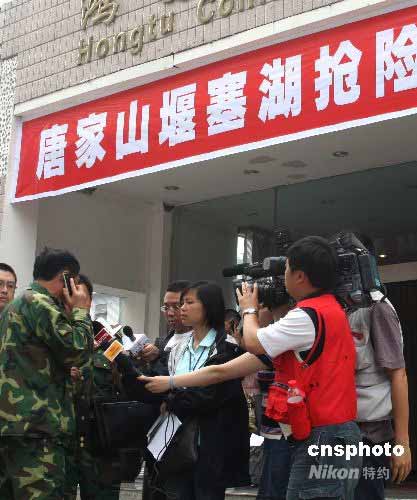 根據(jù)氣象預(yù)報,25至26日四川地震災(zāi)區(qū)將出現(xiàn)強降雨,唐家山堰塞湖險情嚴峻,25日中午,救災(zāi)部隊高級將領(lǐng)(左)在綿陽指揮部用手機通話布置最新應(yīng)急方案。中新社發(fā) 趙振清 攝