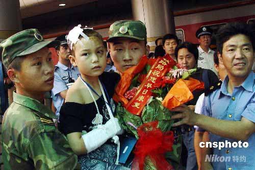 圖:四川災區(qū)小傷員轉(zhuǎn)運河南治療