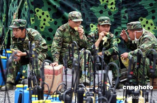 補(bǔ)給救援受災(zāi)民眾 抗震官兵餅干充饑