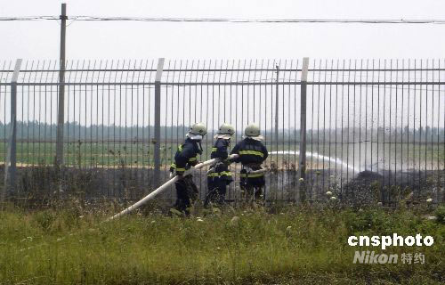 6月5日,湖北襄樊消防官兵緊急出動撲滅機場跑道大火。當天,襄樊機場飛行區(qū)因周邊農民焚燒麥秸,引起跑道一千多平方米的草坪失火,所幸當天該機場飛至廣州的航班已經飛離機場,加之撲救及時,沒有造成嚴重后果。中新社發(fā) 楊勁松 攝