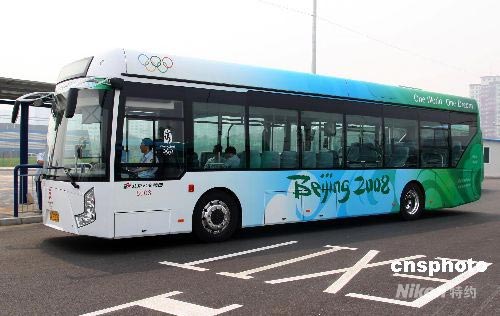 7月7日,專門為北京奧運(yùn)會運(yùn)動員、隨隊(duì)官員和注冊記者提供出行服務(wù)的1200輛奧運(yùn)公交車,開始分批進(jìn)入奧運(yùn)村運(yùn)行。這些車輛均為12米長的低地板無障礙空調(diào)新車,是尾氣排放達(dá)到歐IV標(biāo)準(zhǔn)的柴油車或純天然氣車、純電動車。圖為北京奧運(yùn)純電力公交車。中新社發(fā) 富田 攝