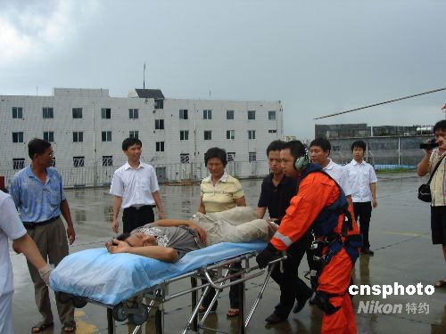 9月20日,“瓊海02093”漁船上的一名漁民在西沙海域作業(yè)時突患急性闌尾炎,有“南海神鷹”美譽的交通運輸部南海第一救助飛行隊緊急馳援,遠赴西沙,飛行3個半小時將漁民成功運送到三亞市農(nóng)墾醫(yī)院接受治療。 中新社發(fā) 毛曉海 攝