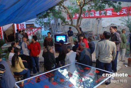 景海鵬的父親特意在自己家的院子里搭起一個(gè)棚子,供鄰居和親戚朋友觀看“神七”升空的電視直播。