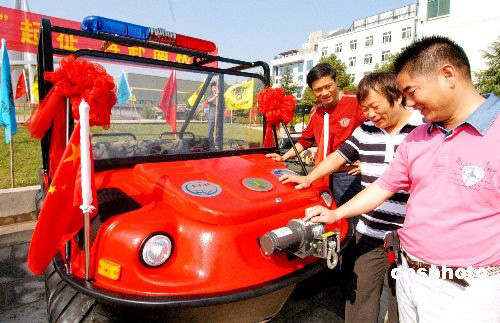 10月9日上午,一輛水陸兩棲全地型功能車(chē)交付中國(guó)南極科考隊(duì),并將于10月20日搭乘“雪龍?zhí)枴?投入笫25次南極科學(xué)考察。這次奔赴南極笫25次科考的水陸兩棲全地型功能車(chē),專(zhuān)門(mén)針對(duì)南極復(fù)雜的地形和氣候,對(duì)車(chē)體、輪胎、散熱系統(tǒng)、變速檔位都進(jìn)行改進(jìn),裝上防冰刀扎的防爆輪胎,并增配了自動(dòng)牽引鉤、牽引鋼絲繩、水上推進(jìn)的螺旋槳及警示燈。中新社發(fā) 張建成 攝