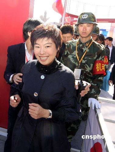 2008年10月10日,第八屆北京圖書節(jié)在地壇公園隆重開幕。北京師范大學(xué)教授、有“學(xué)術(shù)超女”之名的于丹在圖書節(jié)簽名售書。主辦方請(qǐng)來(lái)多名頭戴鋼盔的保安在現(xiàn)場(chǎng)維持秩序,保護(hù)于丹人身安全。中新社發(fā) 吳芒子 攝